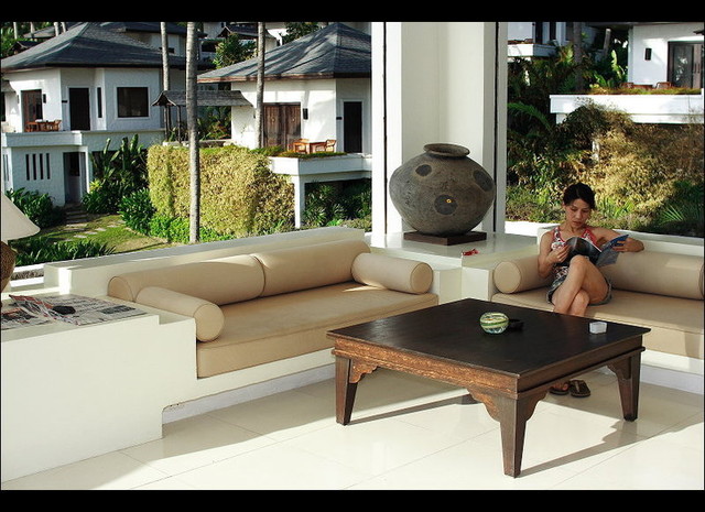 THE RACHA 這個飯店是由七十幾間VILLA組成的,我們這次住的是Deluxe Villa with seaview…Seaview就僅只於sea view,可不是sea front,價錢差很多呢!!